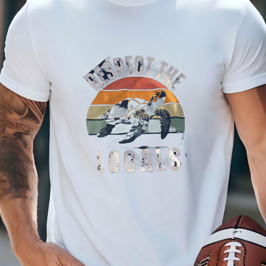 Respect The Locals Retro Sea Turtle Eco Beach Conservation Nature-loving Graphic Hoodie T-shirt