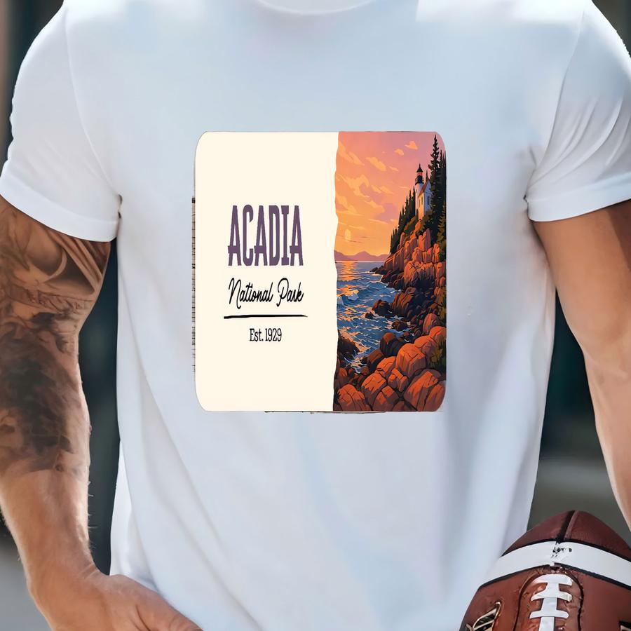 Acadia National Park Sticker, Modern Flat Poster Style Design National Park Vinyl Decal For Water Bottles, Laptops Maine Gift T-shirt
