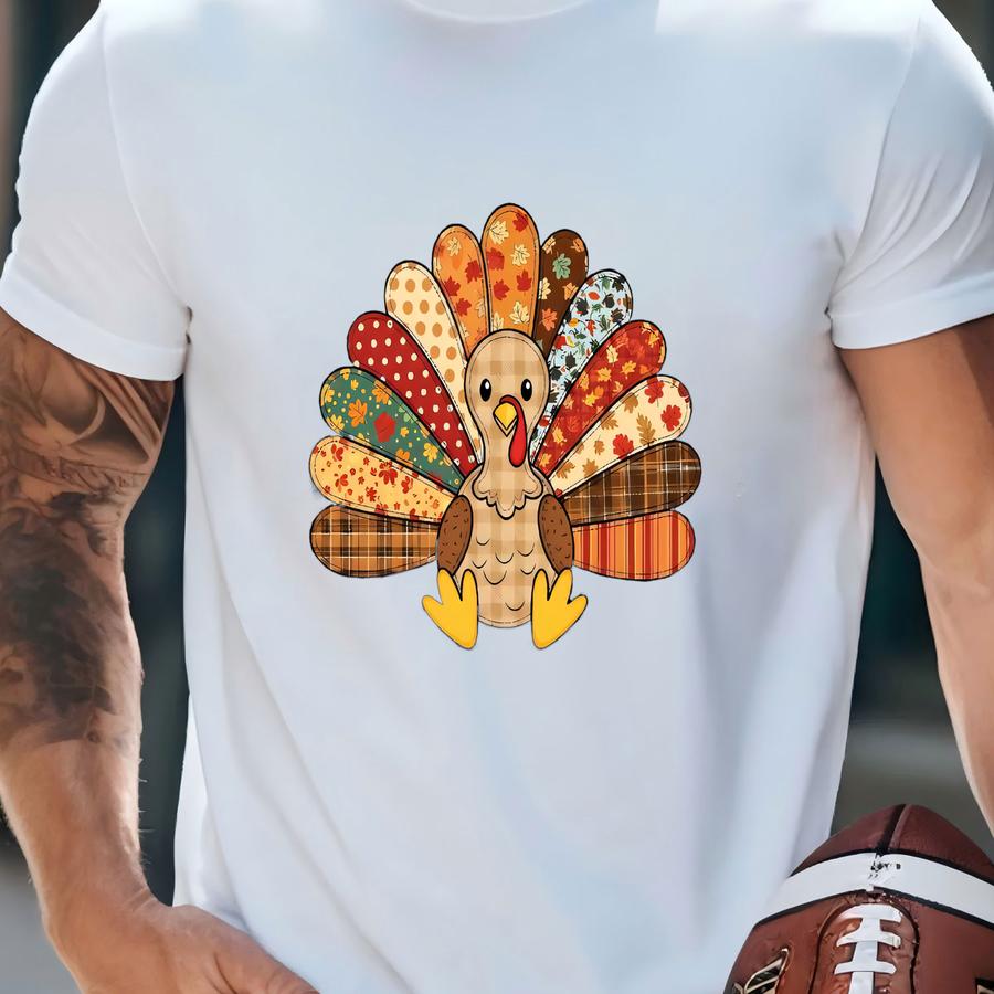 ® Shirt, Cute Patchwork Turkey Thanksgiving Shirt, Fall Turkey Shirt, Thanksgiving Gift, Autumn Turkey, Gobble Gobble Shirt T-shirt