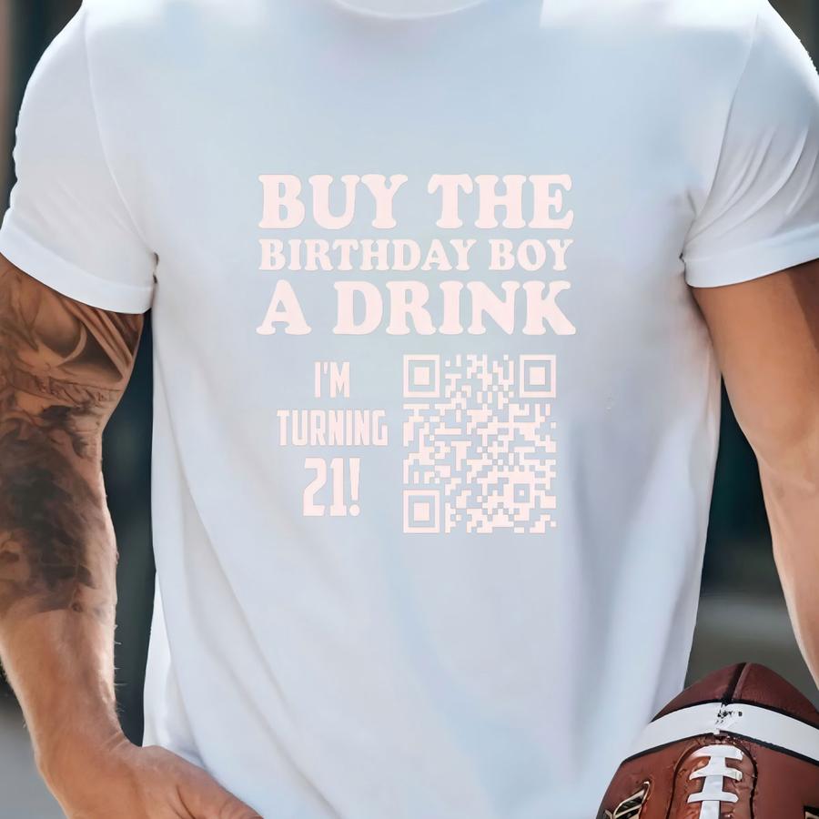 21st Birthday Party Tee, Finally 21, Buy Me A Drink, Custom 21st Birthday, Qr Code Birthday, Funny 21st Gift, Group Birthday, Birthday Boy T-shirt