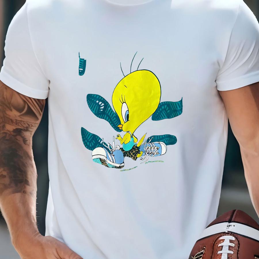 Vintage 90s Tweety Bird Play Hard Shirt - Sz L - Single Stitch Looney Tunes Grunge Era Tee T-shirt