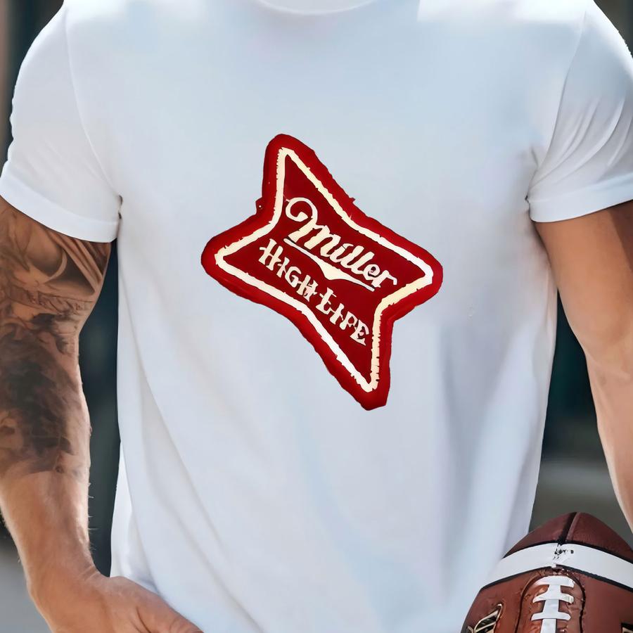 Vintage Miller High Life Beer Denim Shirt Size Large Perfect Fade Double Sided Patches T-shirt