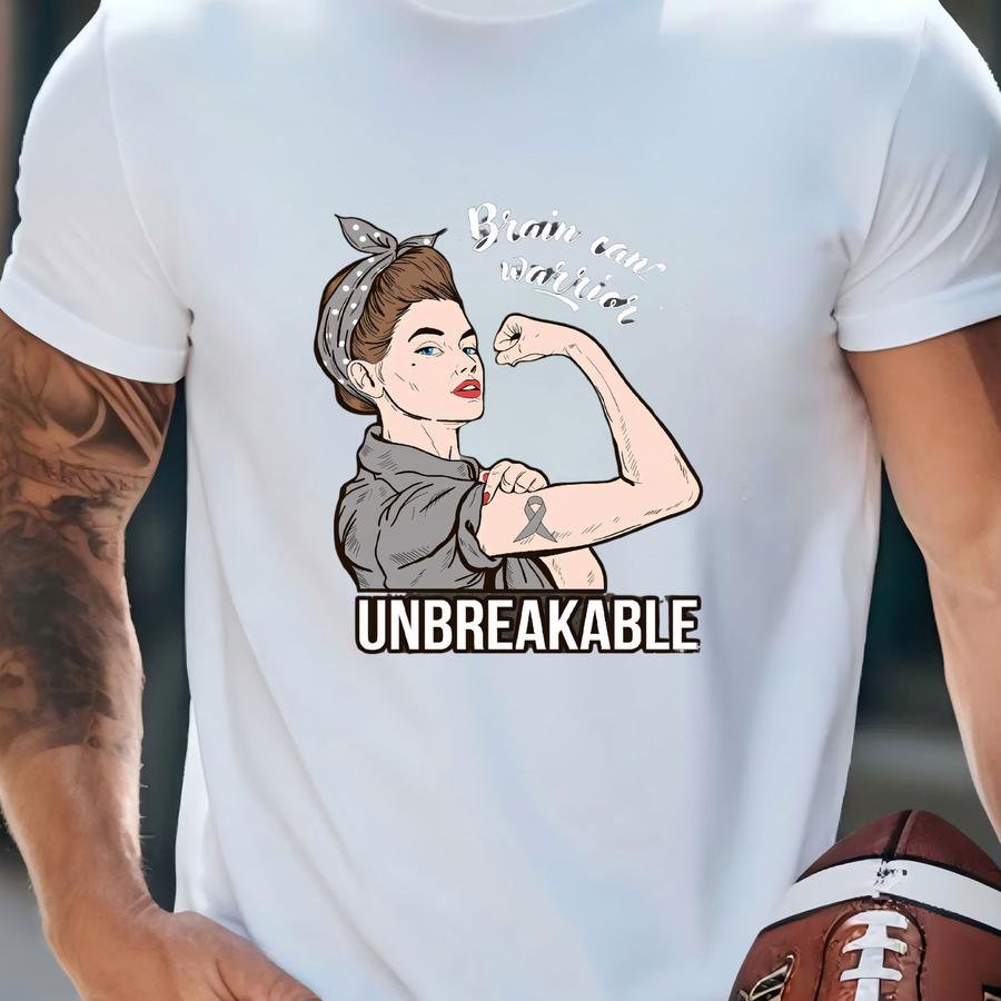 Brain Cancer Awareness Shirt / Tank Top / Hoodie, Brain Cancer Warrior Unbreakable Tshirt, Cancer Support Tee Shirts, Cancer Survivor Gifts T-shirt