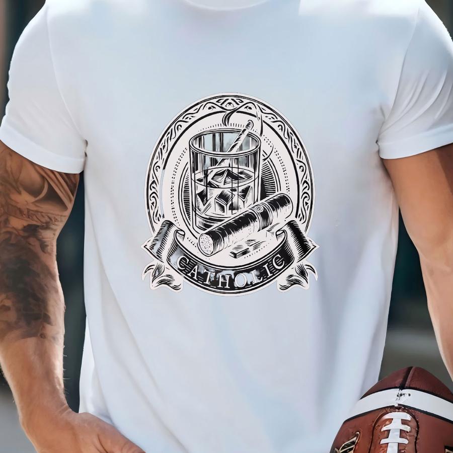 Catholic Tee For Men | Whiskey And Cigar Hoodie | Fathers Day Gift | Catholic Shirt For Him | Religious Apparel | Traditional Catholic Gift T-shirt