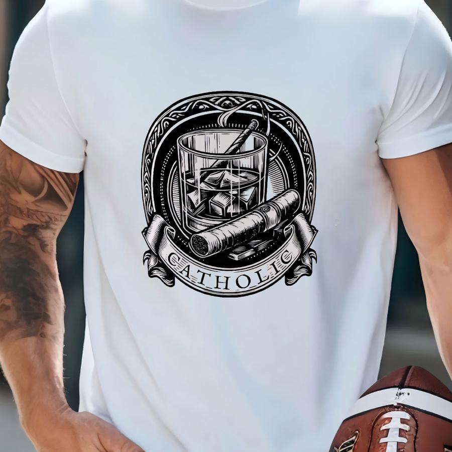 Catholic Faith Mug For Men | Whiskey And Cigar Lover Gifts | 15oz Coffee Cup Gift For Dad, Husband, Priest | Catholic Fathers Day Gift T-shirt