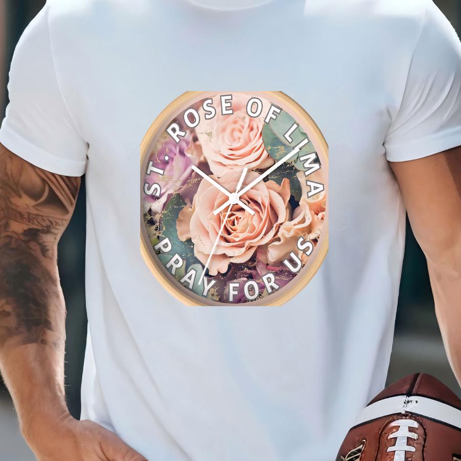 St. Rose Of Lima Wall Clock: Catholic Home Decor, Floral Design T-shirt