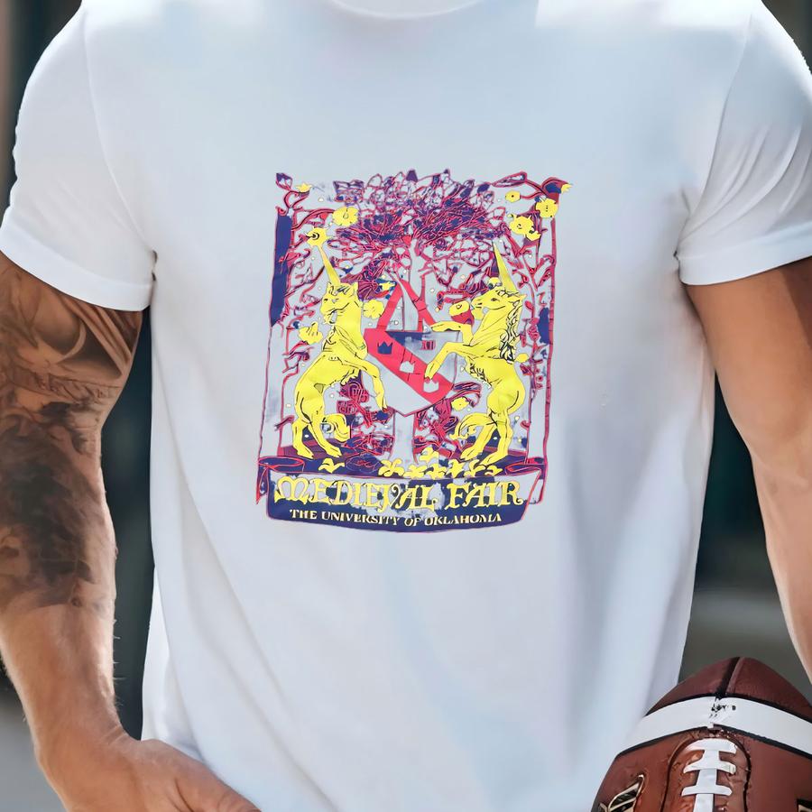 Vintage 80s Medieval Fair Unicorn University Of Oklahoma Sooners Art Shirt T-shirt