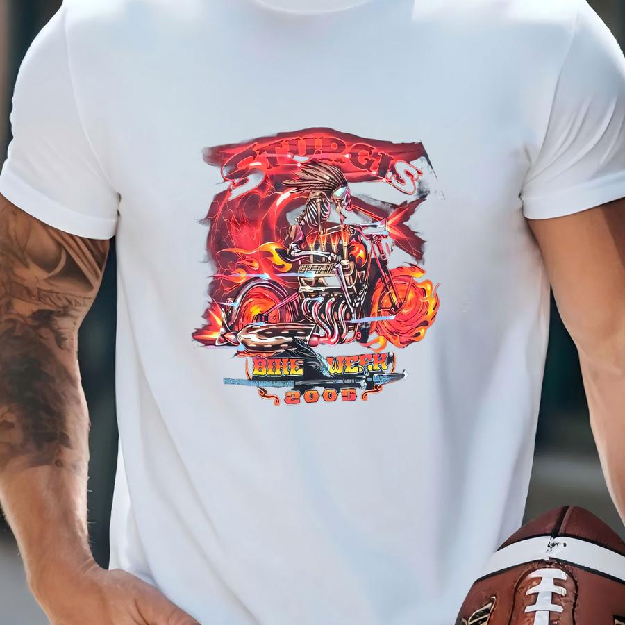 Vintage Y2k Faded Sturgis Flame Skeleton Biker Chief Shirt T-shirt