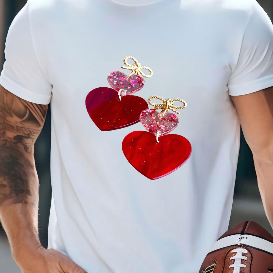 Ribbon And Heart Acrylic And Metal Stud Earrings T-shirt