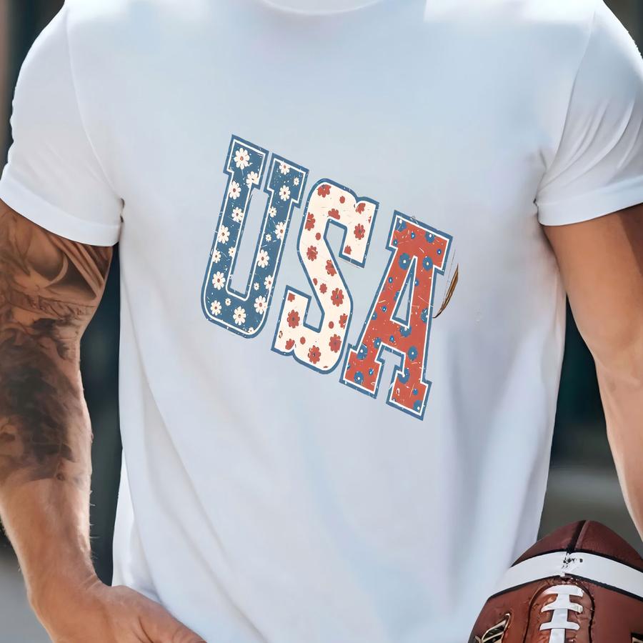 Usa Retro Floral Sweatshirt Vintage Aesthetic Style Distressed Lettering Unisex Crewneck Patriotic Pullover American Apparel Usa Sweatshirt T-shirt