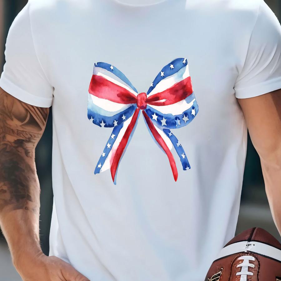 Red White + Blue ® Tshirt Watercolor Bow Garment-dyed Usa Coquette Tee Faded Vintage Style Tshirt 4th Of July Bow Tshirt T-shirt