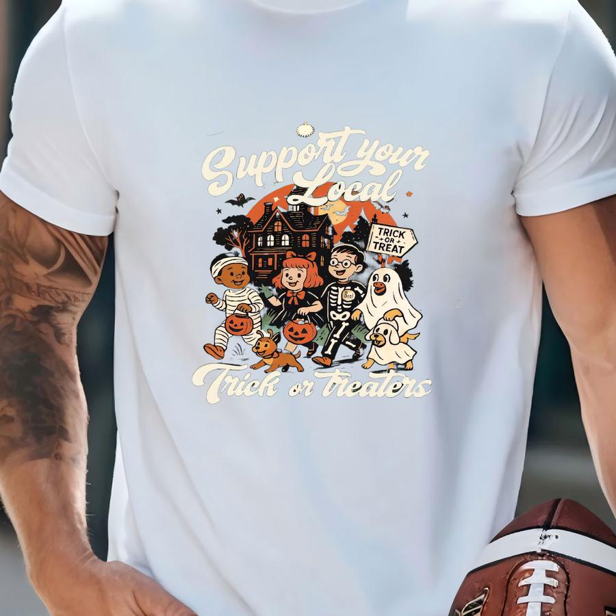 Support Your Local Trick Or Treaters Sweatshirt, Retro Halloween Shirt, Vintage Spooky Fall Sweater, Halloween Graphic, Spooky Kids Pullover T-shirt