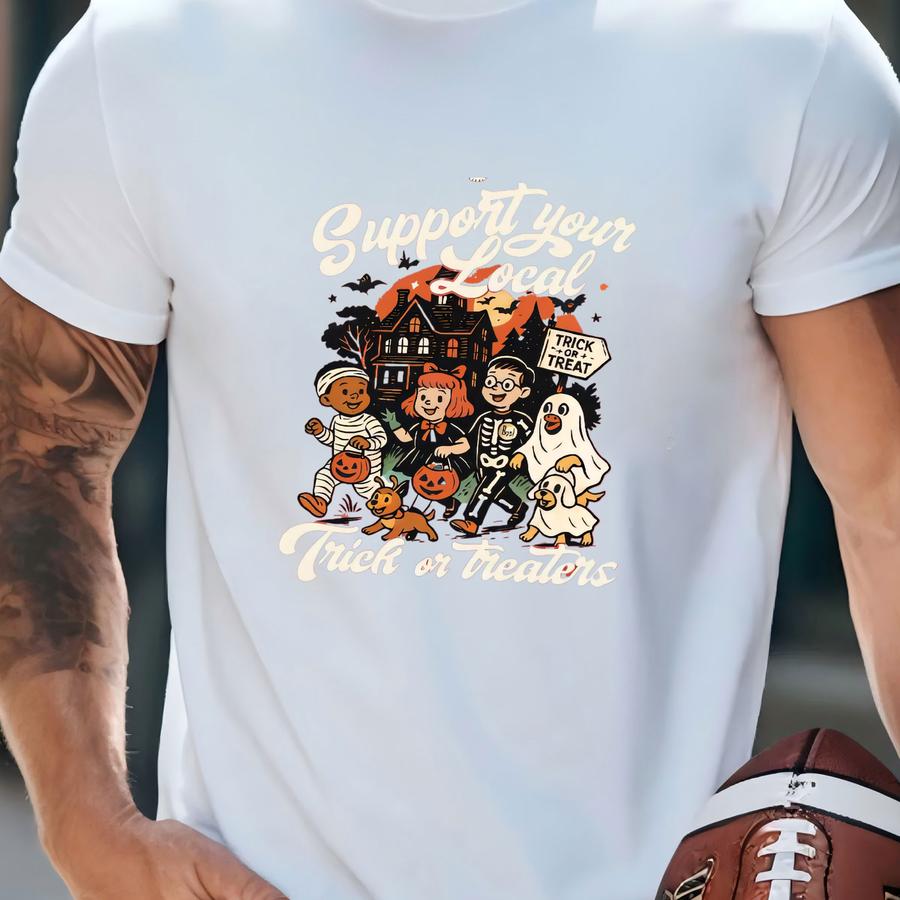Retro Halloween Graphic Tee: Support Local Trick Or Treaters - T-shirt
