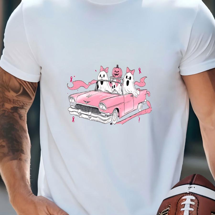 Cancer Awareness Sweatshirt: Pink Ghost Halloween Preppy Sweater T-shirt