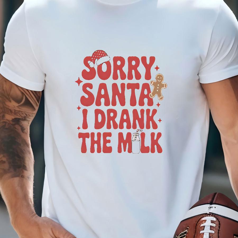 Sorry Santa I Drank The Milk Christmas ® Retro Santa Funny Christmas Baby ® Cute Baby Christmas ® T-shirt