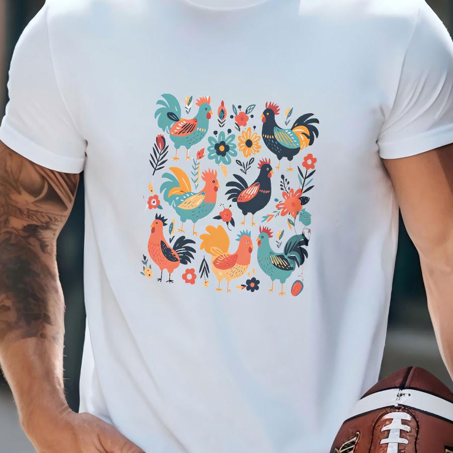 Chicken Sweatshirt, Floral Chicken Sweatshirt, Cute Chicken Hens Sweatshirt, Oversized Animal Lover Sweatshirt, Funny Farm Life Crewneck T-shirt