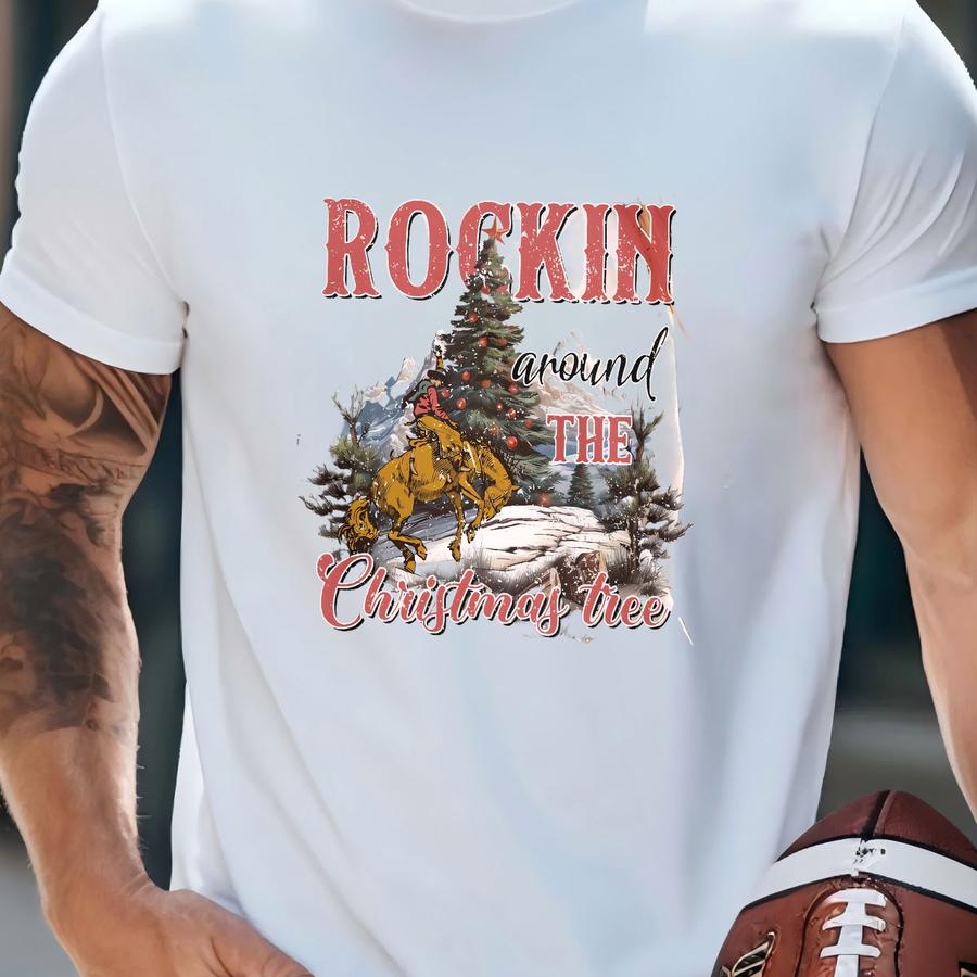 Western Christmas Crewneck Howdy Cowboy Christmas Sweatshirt Rocking Around Christmas Tree Retro Xmas Sweater Country Christmas Sweatshirt T-shirt