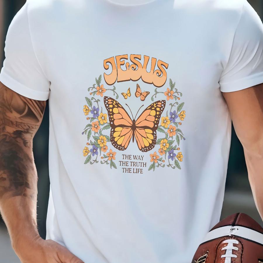 Retro Christian Tee Jesus Is The Way Tote, Butterfly Christian Shirt, Christian Streetwear, Faith Tote, Cute Farmer's Market T-shirt