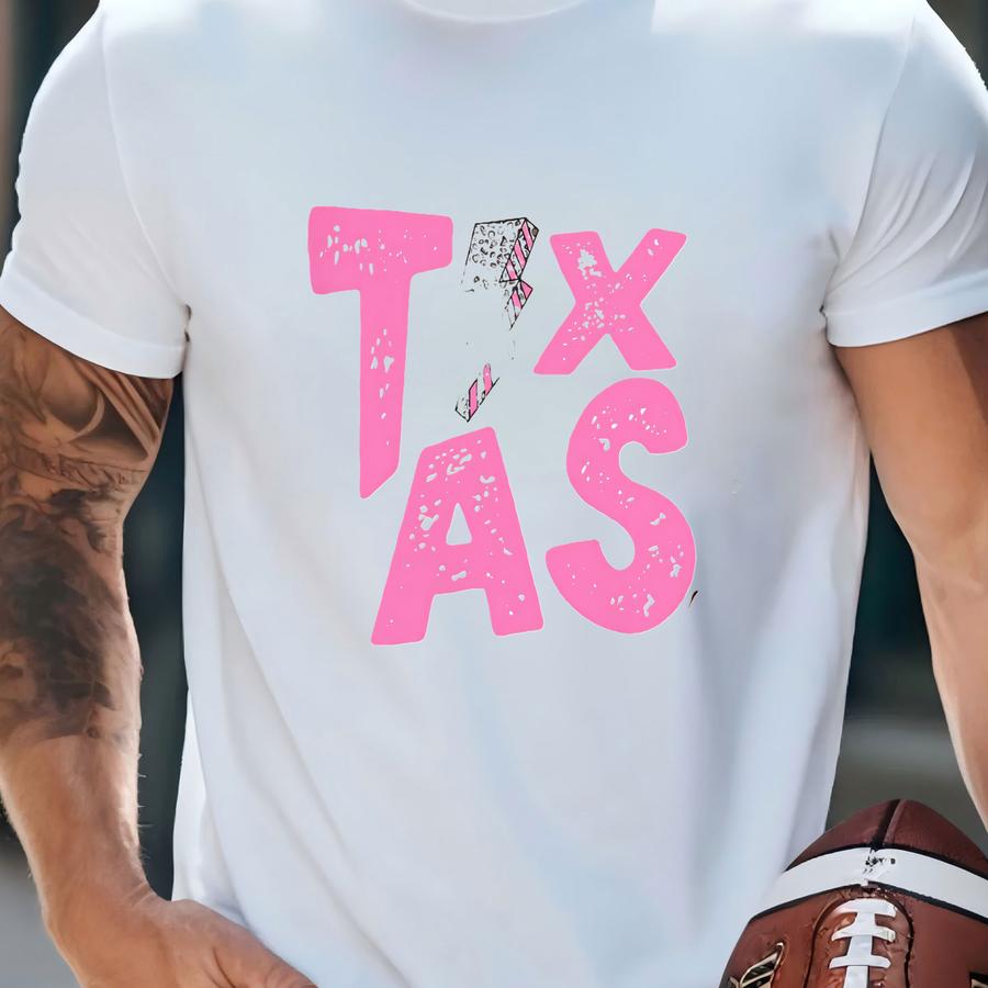 Retro Pink Texas Shirt, Lightning Bolt Texas Tshirt Football Gameday Apparel Preppy Football Shirt Tailgate Shirt T-shirt