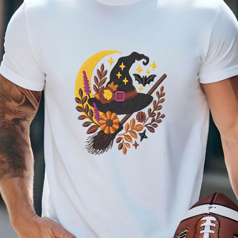 Autumn Witch Hat Sweatshirt, Boho Halloween Crewneck, Floral Crescent Moon Pullover, Cozy Fall Witchy Sweatshirt, Spooky Season T-shirt