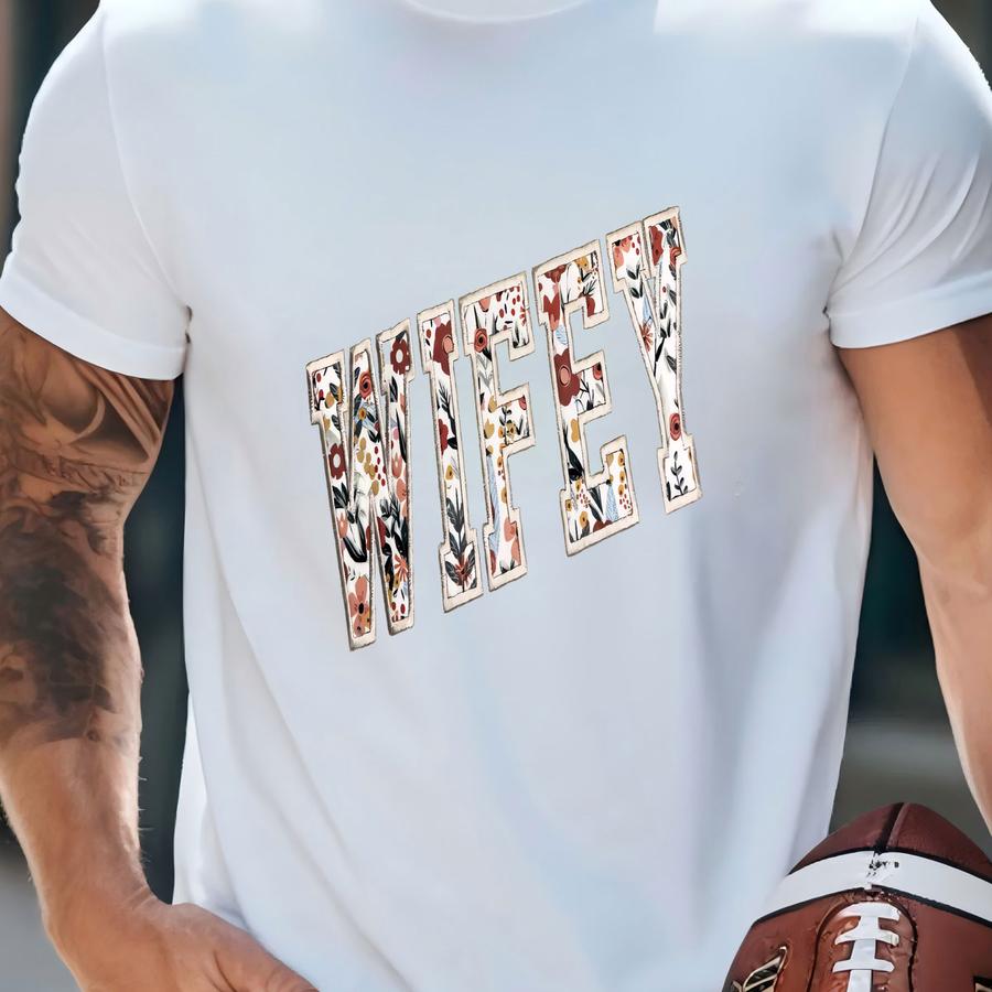 Wifey Sweatshirt, Tone On Tone Botanical Floral Wifey Sweatshirt, Gift For Bride, Newlywed Sweatshirt, Wifey Honeymoon Outfit T-shirt