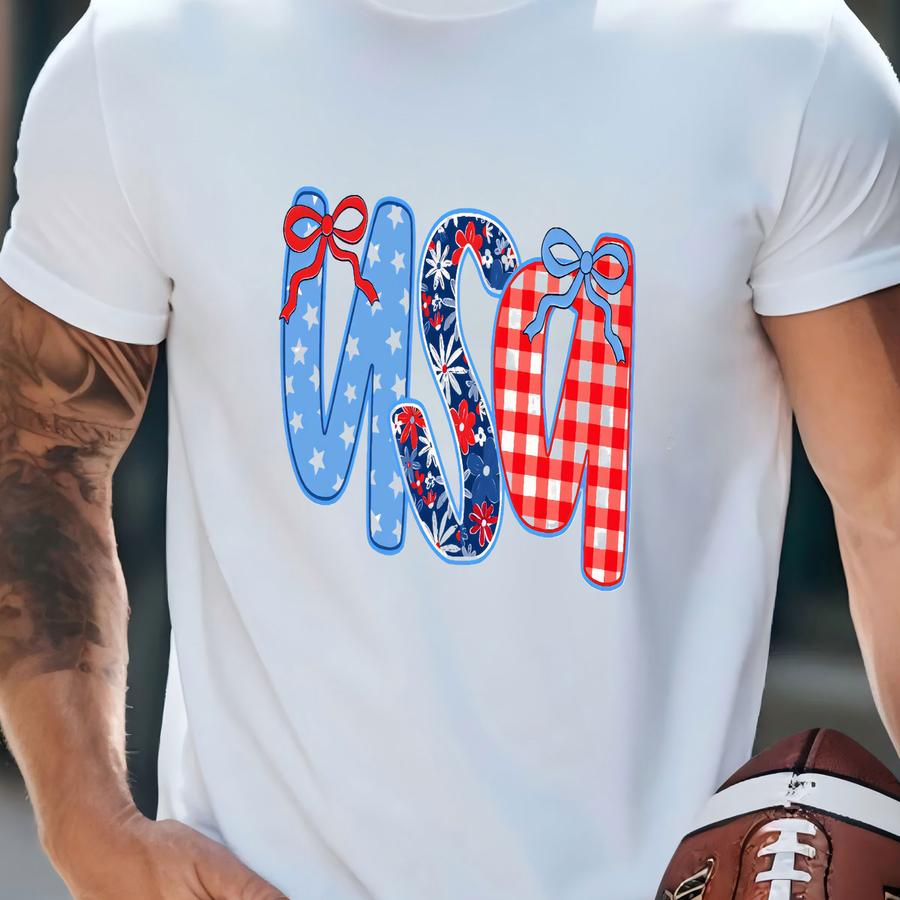 Usa Shirt, Coquette 4th Of July Shirt, Floral Patriotic Shirt, Red White Blue Shirt, Girly Independence Day Top, Tee T-shirt
