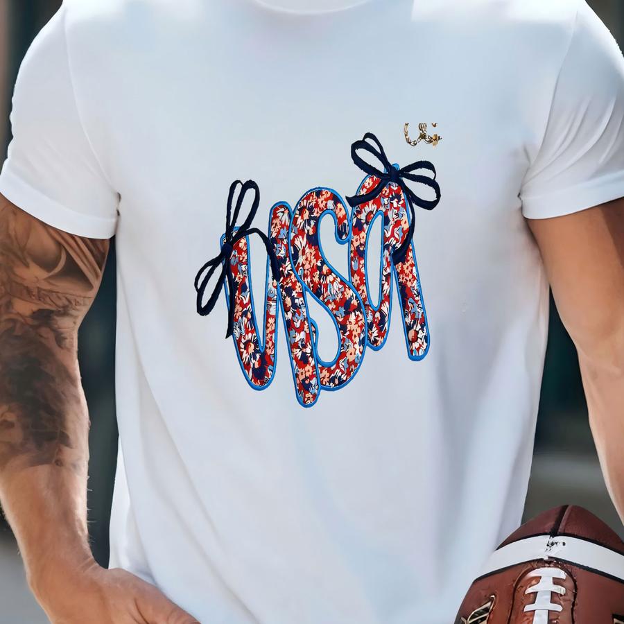 Coquette Usa Sweatshirt, Cute Girly American Flag Shirt, 4th Of July Usa Pullover, Patriotic America Aesthetic Sweatshirt T-shirt