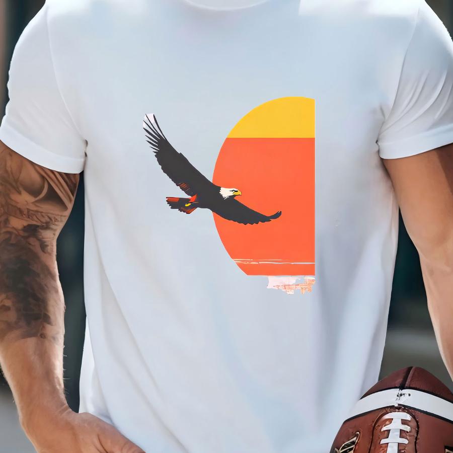 Retro Eagle Sunset Hoodie - Wildlife Adventure Graphic Tee - Bold Nature Lover Shirt - Bird Silhouette Outdoor Shirt T-shirt