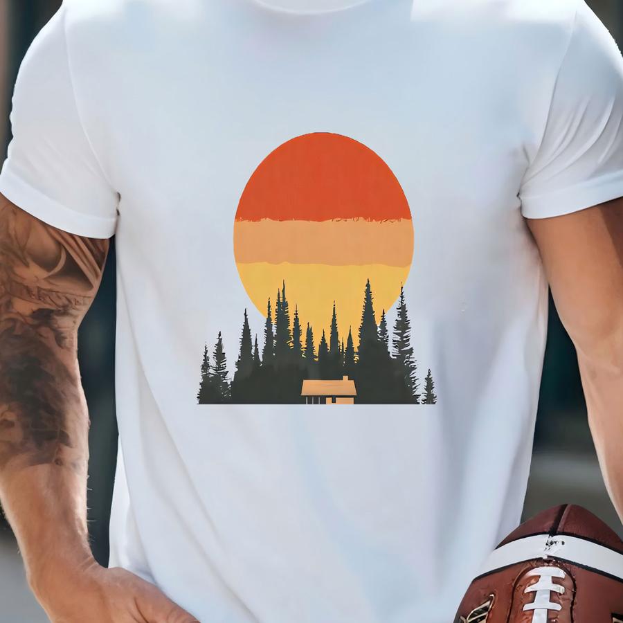 Retro Cabin In The Woods Hoodie - Camping Sunset Graphic Tee - Outdoors Nature Lover Shirt - Forest Adventure Shirt T-shirt