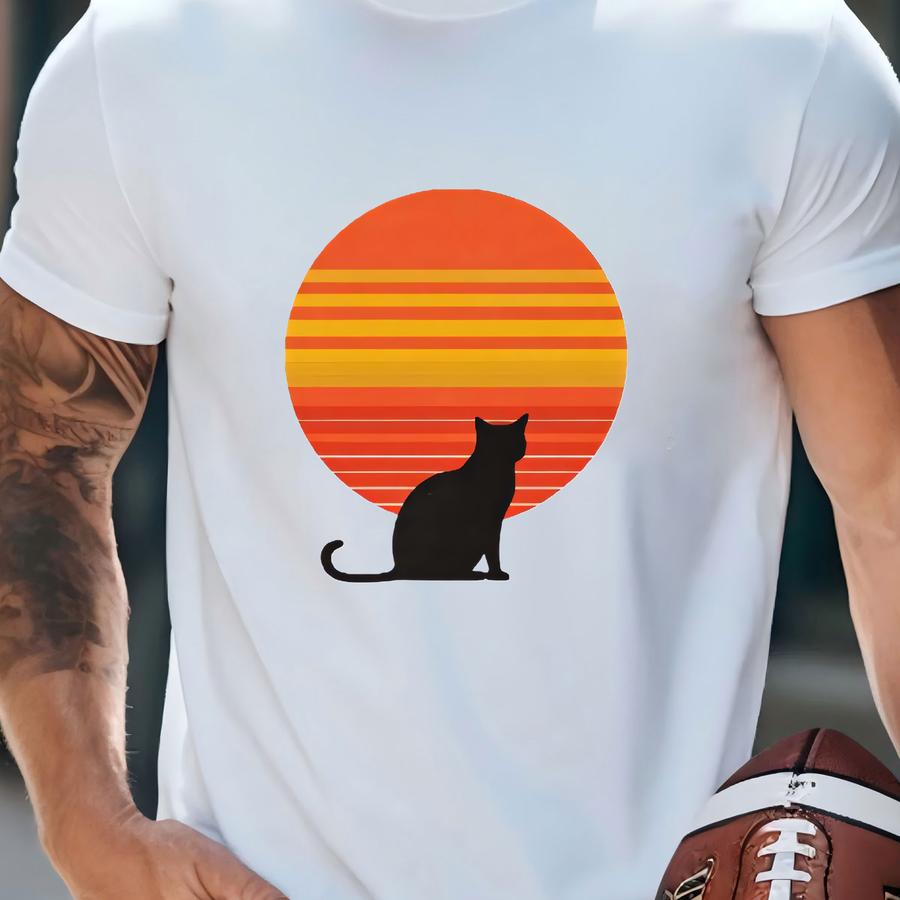 Retro Cat Sunset Hoodie - Minimalist Cat Graphic Tee For Pet Lovers - Cute Animal Lover Shirt With Sunset Silhouette Design T-shirt