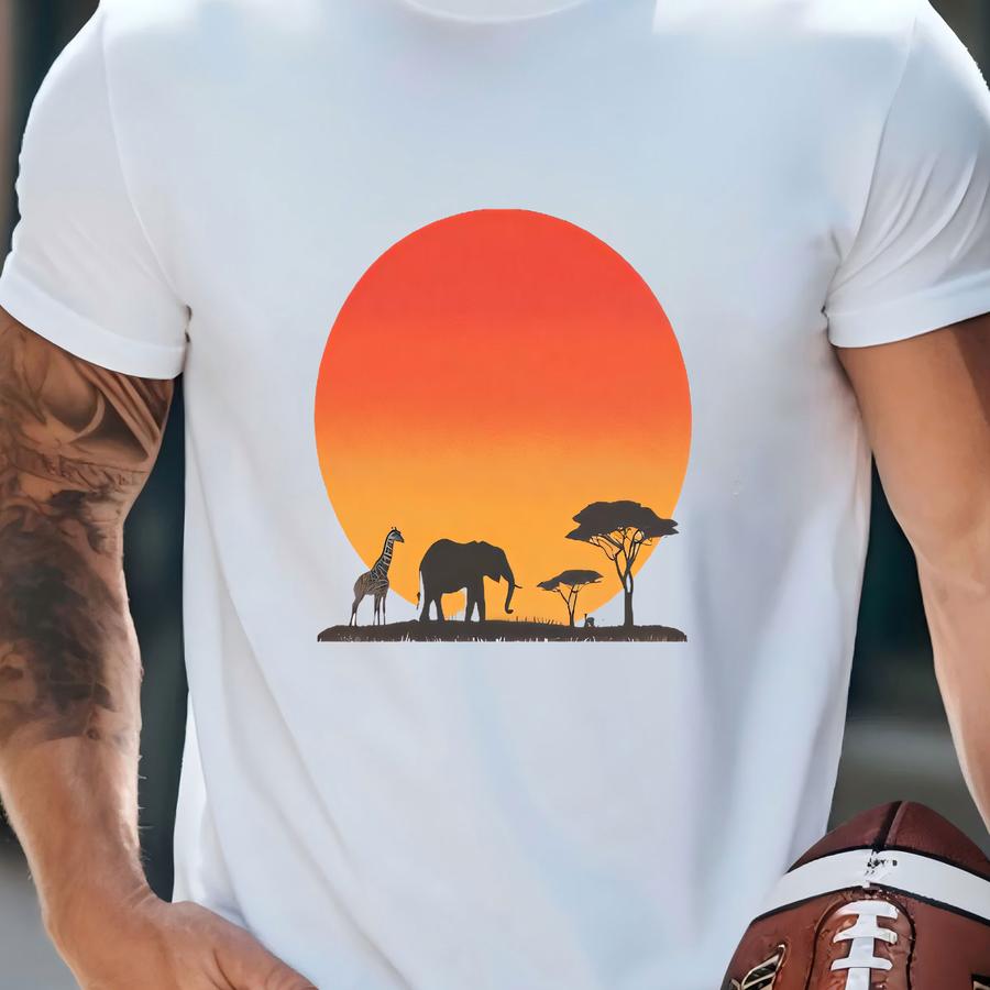 Retro Safari Sunset Hoodie - African Wildlife Graphic Tee For Nature Lovers - Adventure Shirt With Elephant And Giraffe Design T-shirt