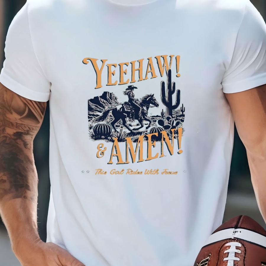 Yeehaw Amen Christian Cowgirl Tee: Western Rodeo Shirt T-shirt