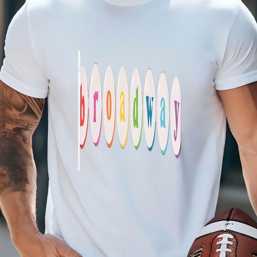 Broadway Friendship Bracelet Tee | Rainbow Beaded Letter Shirt, Theater Bestie T-shirt