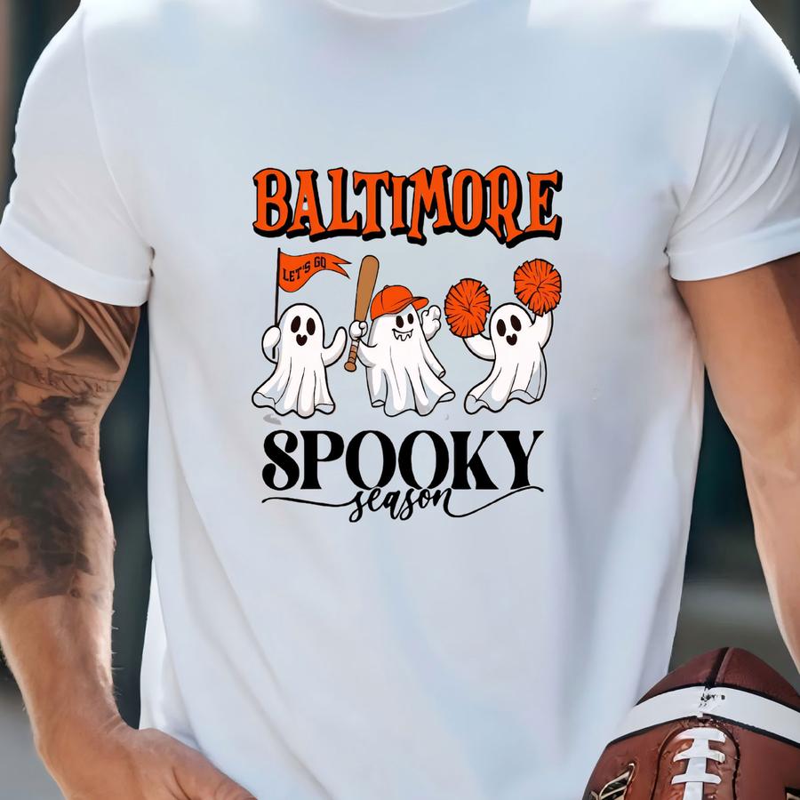 Baltimore Baseball Spooky Season Cute Ghost Vintage Sweatshirt, Lets Go Baltimore Baseball Team Retro 90s Hoodie, Baseball Mom Shirt T-shirt