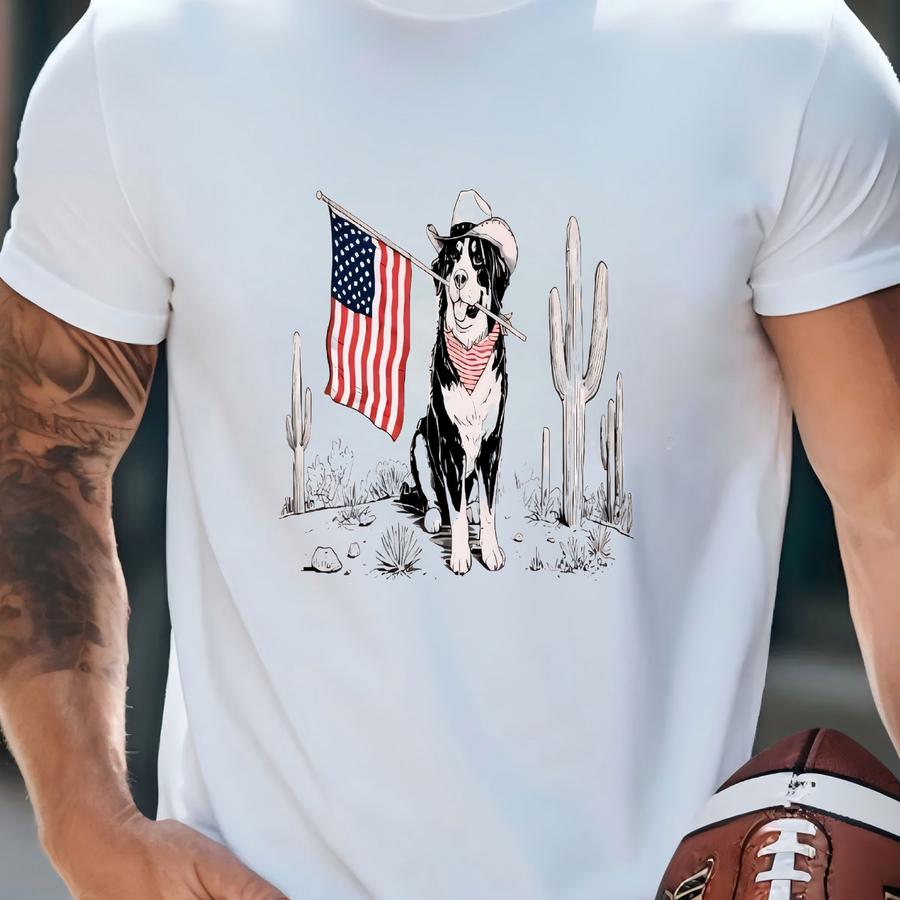 4th Of July Patriotic Dog Unisex Shirt, Western Dog Shirt, Cowgirl Vintage Tee, Independence Day Shirt, For Her, For Him T-shirt