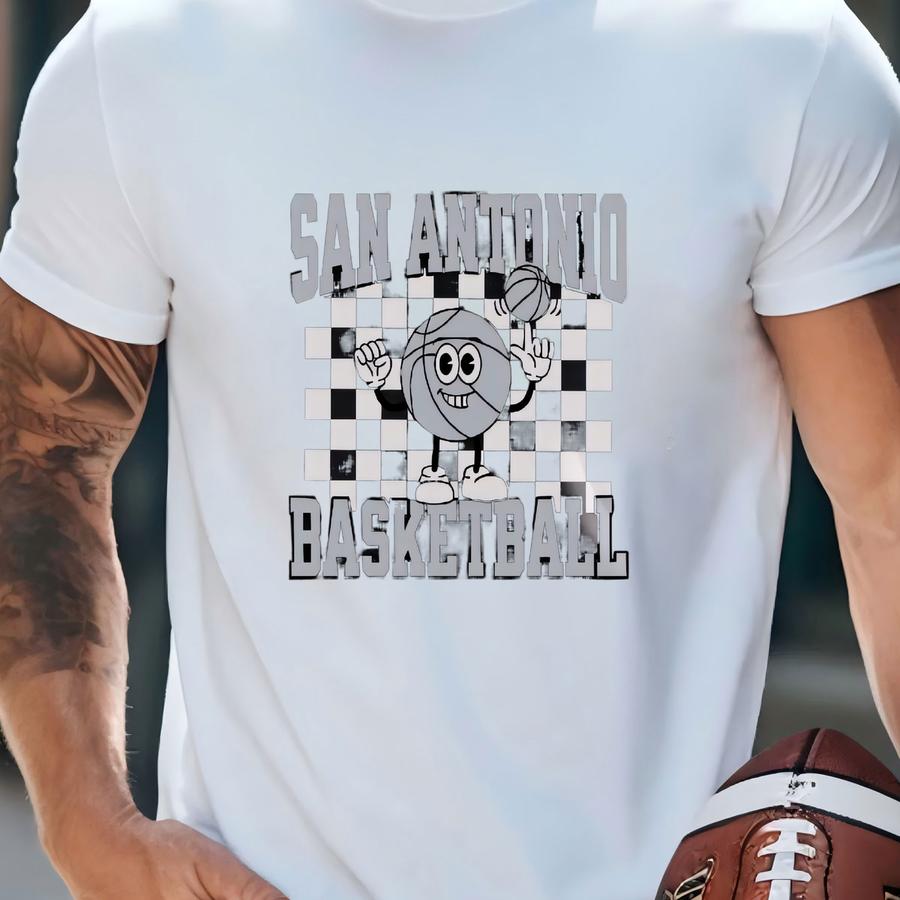 Toddler Checkered San Antonio Basketball Apparel, Boys/ Girls Long Short Sve Tees Hoodies, Gift For Sports Fan, Kids Game Day Outfit T-shirt