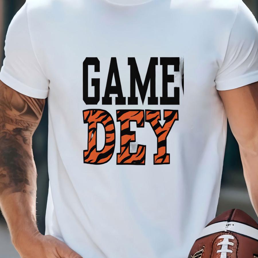 Cincinnati Football Apparel, Mens Womens Tees/crewneck Sweatshirts, Gift For Sports Fan, Game Dey Tiger Print T-shirt