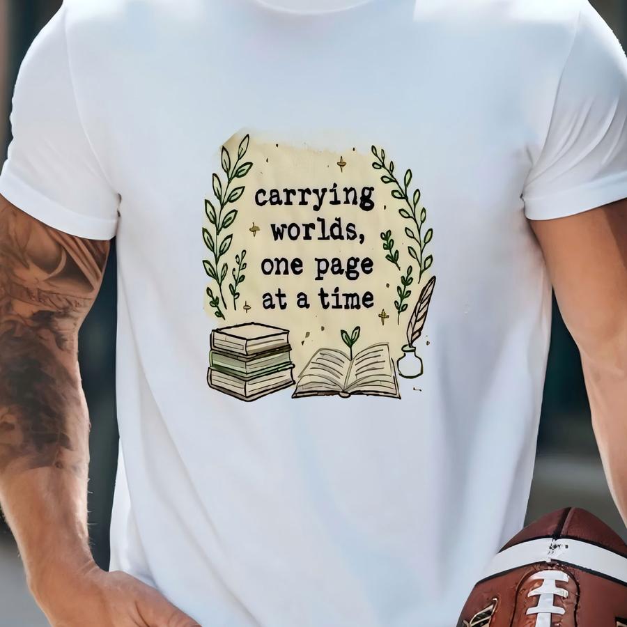 “carrying Worlds, One Page At A Time” Canvas Tee - Book Lover , Custom T-shirt