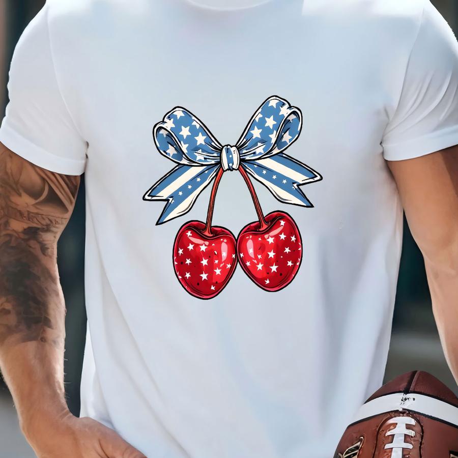 Cherry Bow 4th Of July Cherry Bow Usa Flag Sweatshirt, Cherry Bow Patriotic Cherry Bow, Independence Day America Cherries Coquette Bowjul022 T-shirt