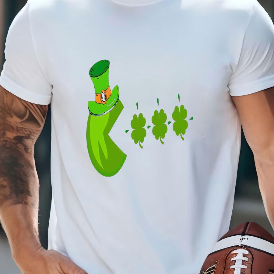 St Patrick's Day Pacman Sweatshirt, Fun Gamer Tee For Family, Perfect For Gamers, Gamer Shirt, Pac Man Leprechaun Hat Hoodies -spd004 T-shirt