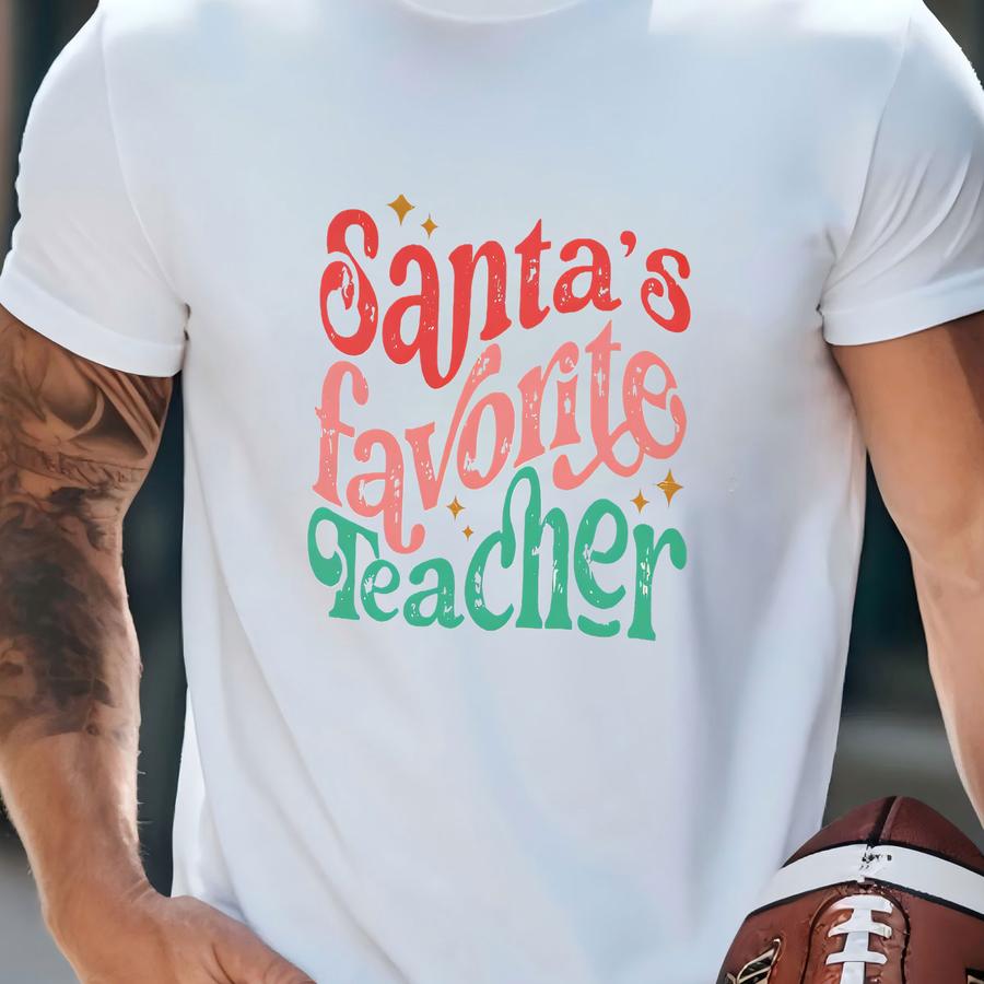 Christmas Sweatshirts Santa's Favorite Teacher Christmas Teachers Sweatshirt Teaching Shirts Retro Ugly Christmas Sweater Holiday Pullover T-shirt