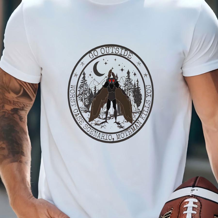 Worst Case Scenario Mothman Hoodie Sweatshirt Mountain Themed Shirt Hiking Outdoor Shirts Wilderness Graphic Tee Funny Camping Sweatshirts T-shirt