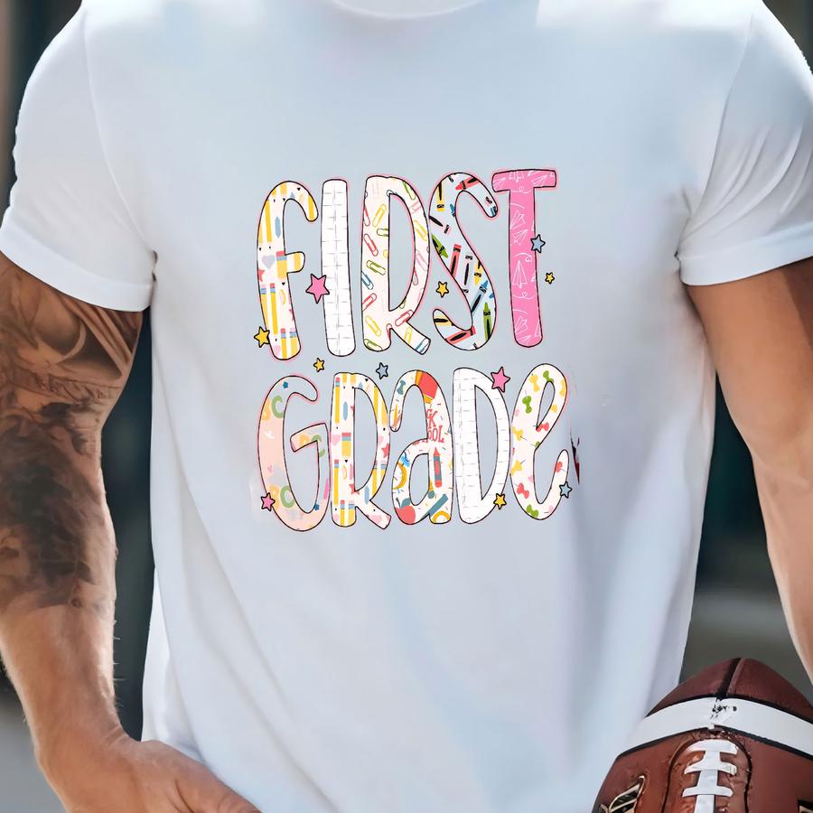 ® First Grade Teacher Shirt, Back To School 1st Grade Tee, Teacher Appreciation Gift, Cute Elementary School, Coquette Bow T-shirt