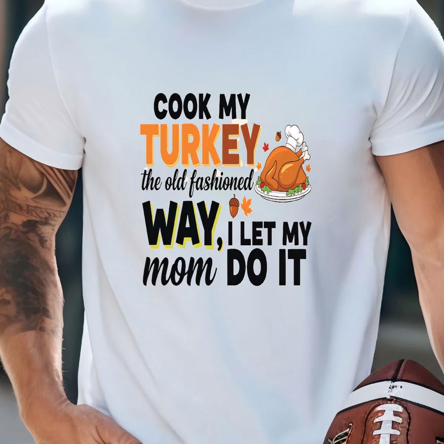 ® Funny Thanksgiving Shirt, I Cook My Turkey The Old Fashioned Way Tee ,i Let My Mom Do It Hoodie, Retro Family Dinner Humor T-shirt