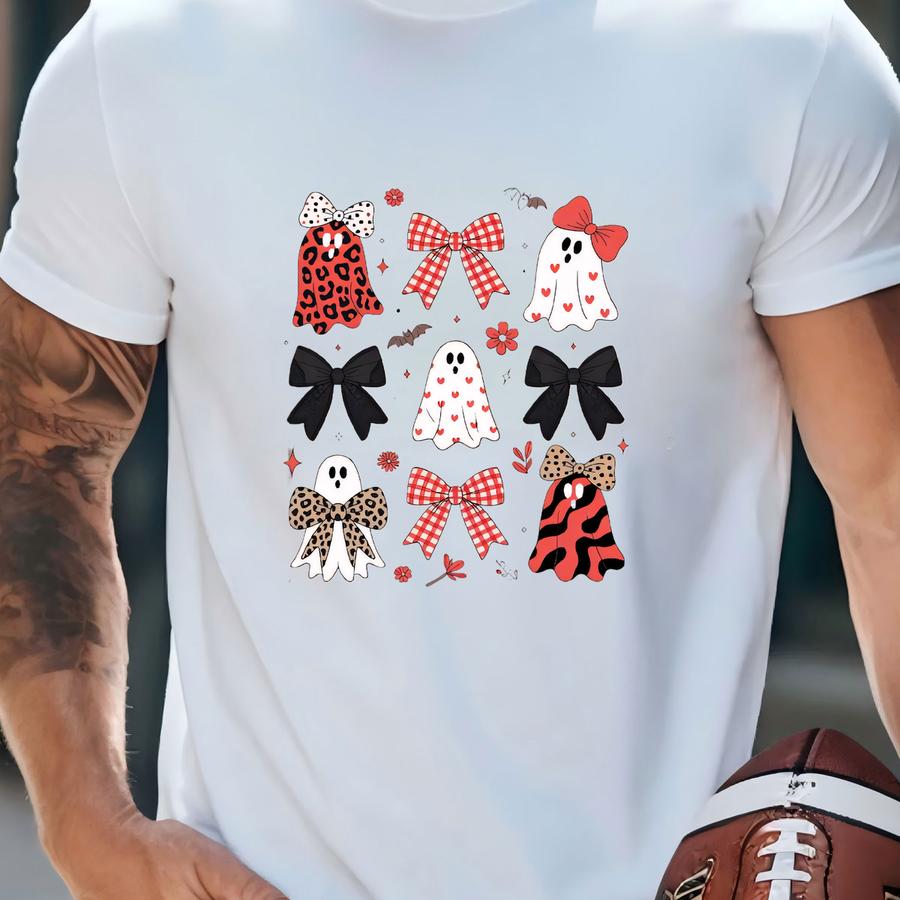 Coquette Red Leopard Ghosts Halloween Sweatshirt, Cute Ghost Halloween Girly Sweater, Boo-jee Girl Halloween Sweater, Halloween Gift T-shirt
