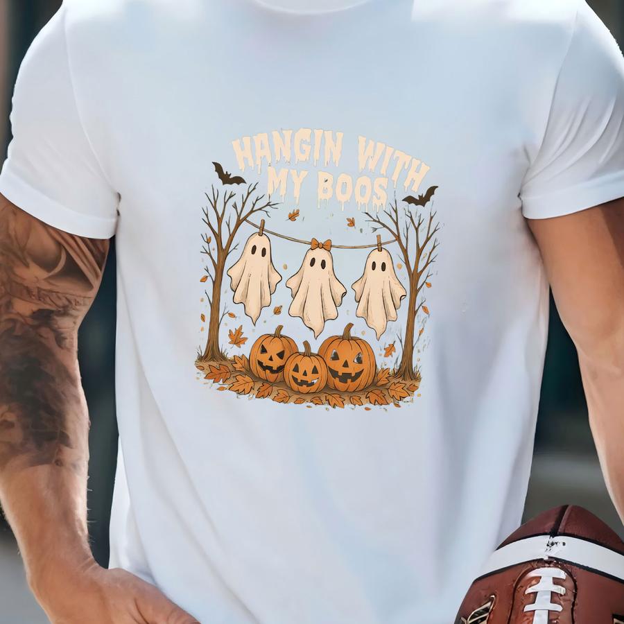 ® Cute Halloween Ghost Hoodie, Halloween Hanging With My Boos Ghost Shirt, Cute Girly Halloween Gift, Cat Lovers Gift T-shirt