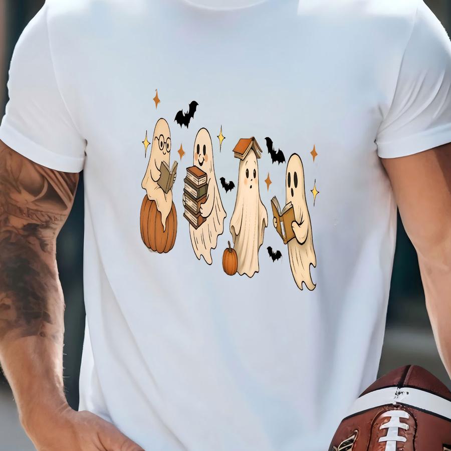 ® Cute Ghost Reading Book Halloween Tshirt, Ghost Reading Book Girly Shirt, Ghost Girly Halloween Gift, Halloween Gift T-shirt