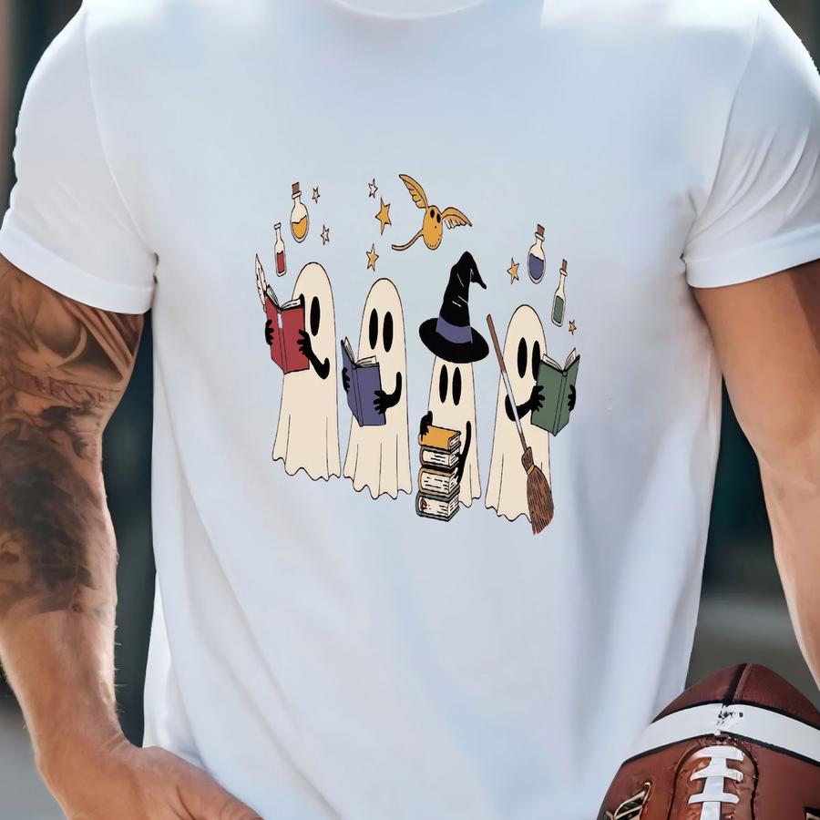 ® Cute Ghost Reading Book Halloween Tshirt, Ghost Reading Book Girly Shirt, Ghost Girly Halloween Gift, Halloween Gift T-shirt