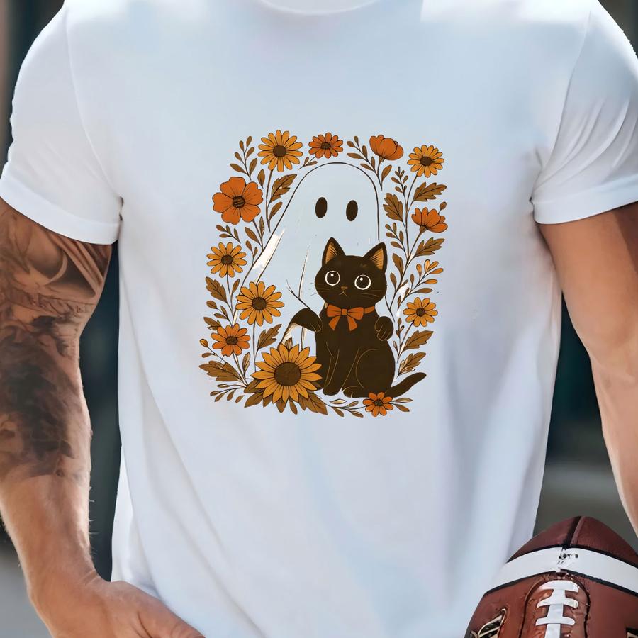 ® Cute Ghost Black Cat Halloween Tshirt, Ghost And Cat Shirt, Ghost Girly Halloween Gift, Halloween Gift T-shirt