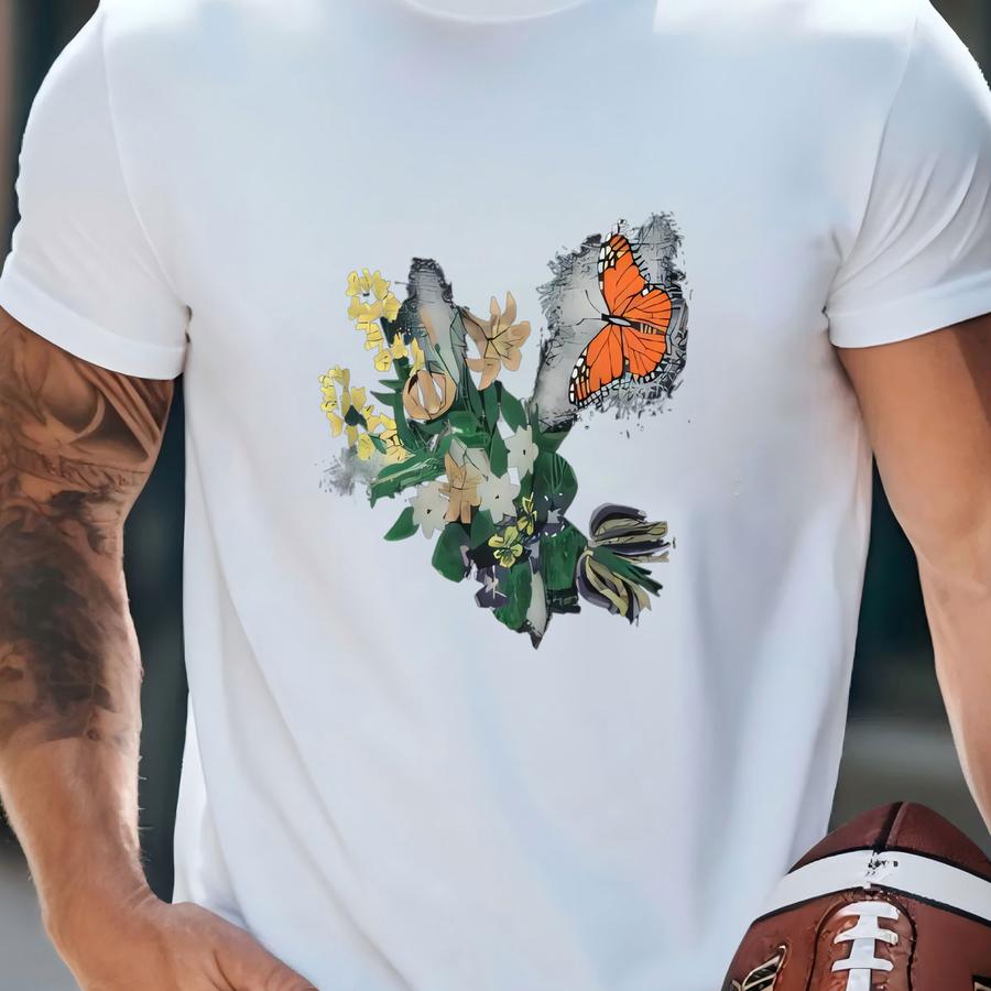 90s Retro Floral Sweatshirt: Butterfly Flower Art, Size M T-shirt
